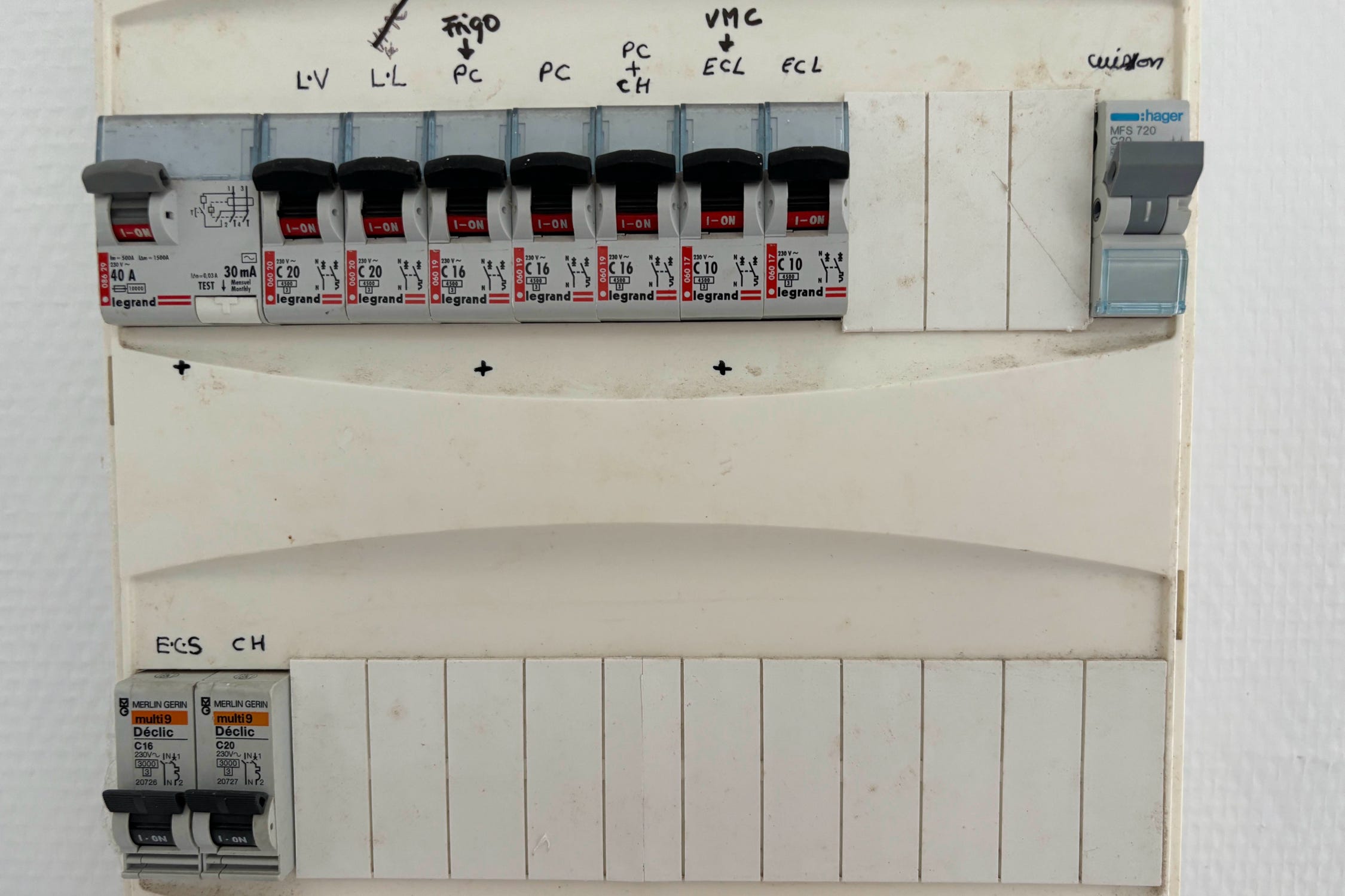 A droite de la porte en entrant se trouve le tableau électrique. Il faut enclencher tous les disjoncteurs